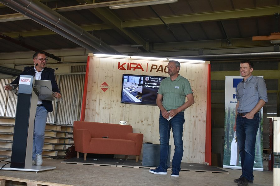 „Der Holzbau und die Kisten Fabrikation hat eine grossartige Zukunft“, sagte Ruedi Heim von der Kifa AG, als er beim Frühlings-Event von Lignum Ost den rund 50 Holzbaufachleuten aus den verschiedensten Branchen das Familienunternehmen vorstellte. Der moderne Verpackungs- und Systembaubetrieb wurde 1919 als Kistenfabrik gegründet und ist heute mit rund 150 Mitarbeitenden in Märstetten und Aadorf im Premiumbereich «Industrieverpackungen aus Holz» Marktführer. Die Kifa Pack ist europaweit der erste Hersteller, der in einem digitalisierten Prozess Holzkisten industriell produziert. Das Unternehmen hat seine Wertschöpfungskette vom Auftragseingang über die Produktion bis hin zur Auslieferung vollständig digitalisiert. Der Kunde baut am PC in kurzer Zeit über den Online Konfigurator seine individuelle Kiste zusammen, kontrolliert das Ergebnis in der 3D-CAD-Ansicht, prüft das parallel vom System gelieferte schriftliche Angebot und bestellt mit einem Klick seine Kiste, die dann sofort in der vollautomatisierten Produktionsstrasse hergestellt wird und im schnellsten Fall in vier Stunden bei dem Kunden vor dem Werkstor steht. Jedes Einzelteil ist definiert, jeder Handgriff erfasst und jeder Aufwand hinterlegt. Mittlerweile sind rund 15´000 Produkte im System erfasst und es werden täglich mehr. Durch den optimierten Beschaffungsprozess entstehen für den Kunden vom Einkaufsprozess, über reduzierte Lagerkosten, bis hin zu den Lieferzeiten grosse Einsparpotenziale. Zudem entsteht durch die direkte Lieferantenanbindung ein strukturierter, vollständig personenunabhängiger Prozess, bei dem das Know-How von jedem Auftrag langfristig gesichert ist. Nach den spannenden Referaten gab es für die Holzfachleute bei einer Führung durch den Betrieb interessante Einblicke in die digitalisierte Produktion. „Wenn ich das sehe, werden sie in fünf Jahren auch noch den Baum bestellen, den sie für die Kiste brauchen, damit wir wissen, welchen wir im Wald abhauen müssen“, sagte Paul Koch, Lignum Ost Präsident und Revierförster bei «Thurforst».