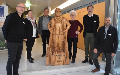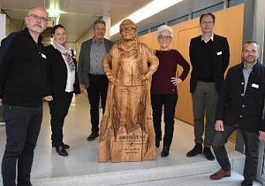Mit einer Feierstunde wurde die hölzerne Skulptur von Hildegard Kissling im Kantonalen Verwaltungsgebäude in Frauenfeld empfangen.